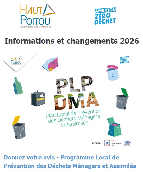 A travers le Programme Local de Prévention des Déchets Ménagers et Assimilés (PLPDMA), la Communauté des Communes du Haut-Poitou structure sa politique de prévention pour une période de 6 ans, de 2025 à 2031.
