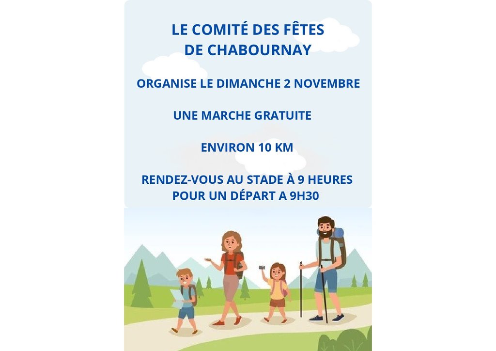 Le comité des fêtes de Chabournay organise sa marche gratuite et ouverte à tous le Dimanche 2 Novembre