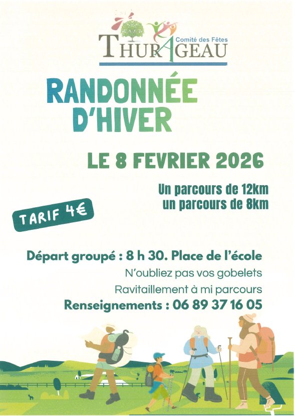 Le comité des Fêtes de THURAGEAU organise sa randonnée d'hiver le 8 février 2026.